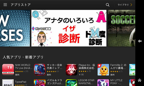 これまでにも何度か紹介しているようにAndroidやAmazon製タブレット「Kindle Fireシリーズ」で利用できるアプリを配信している「Amazon Androidアプリストア」。
