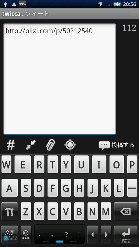 画像の投稿が終了後、短縮URLがツイート画面の入力欄に挿入されます。その後ツイートを編集して投稿すれば完了です。