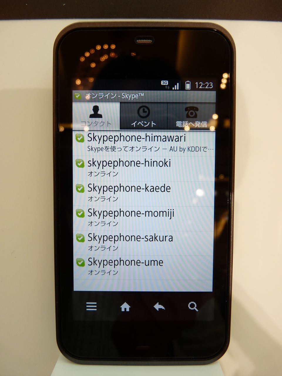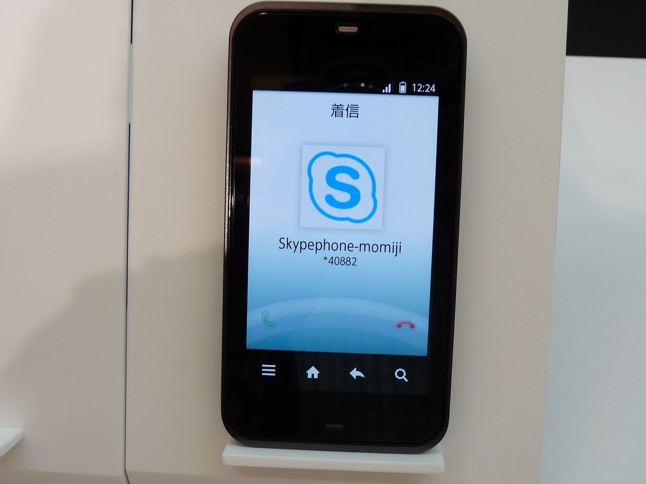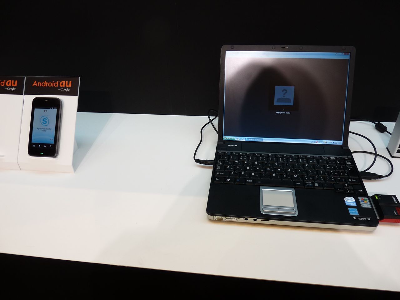 こちらが実際の通話デモンストレーションです。パソコンから、IS03へとSkypeで発信しているところです。