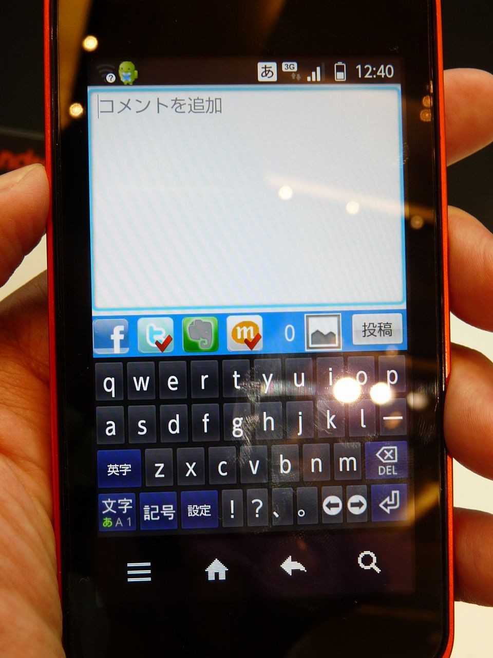 Twitterやmixiボイスなどへ一斉送信可能な投稿画面です。