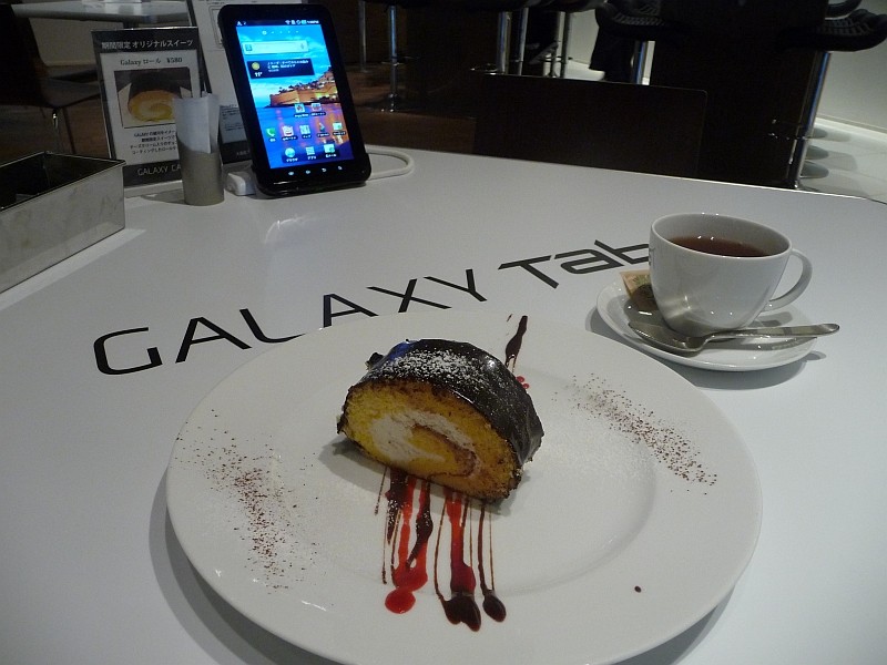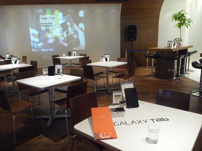 店内カフェスペースのテーブルには各テーブルごとに「GALAXY Tab」が設置されて自由にタッチ&トライしながら食事などを楽しむことができます。