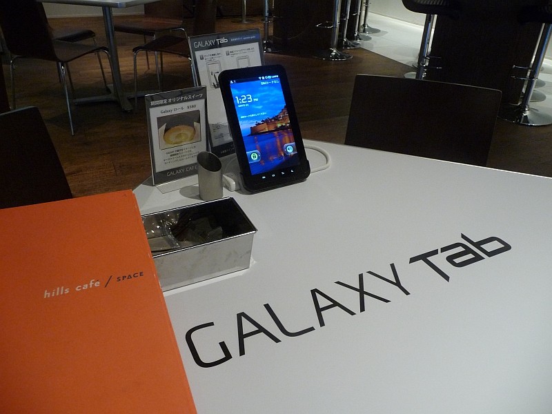六本木ヒルズの中央にあるカフェ&スペース「Hills Cafe/Space」が期間限定で「GALAXY CAFE」になっています。オープン期間は、2010年12月7日(火)~12月25日(土)まで。店内では、サムスン電子製の最新スマートフォン「GALAXY S SC-02B」および最新タブレット型端末「GALAXY Tab SC-01C」のタッチ&トライをすることができるようになっています。
