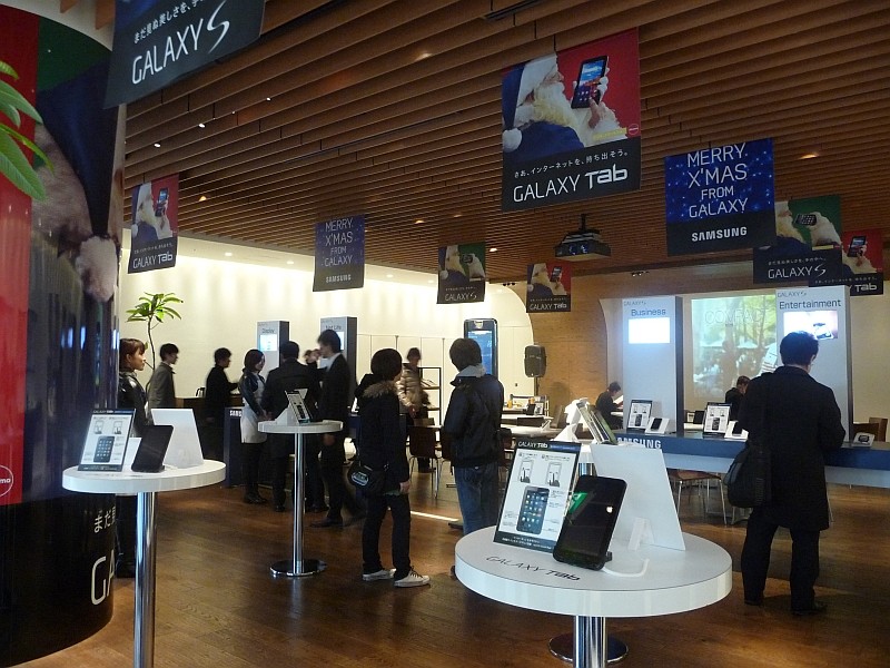 店内のスペースでは、GALAXY SおよびGALAXY Tabの実機が数多く展示されており、心置きなくタッチ&トライできるようになっています。