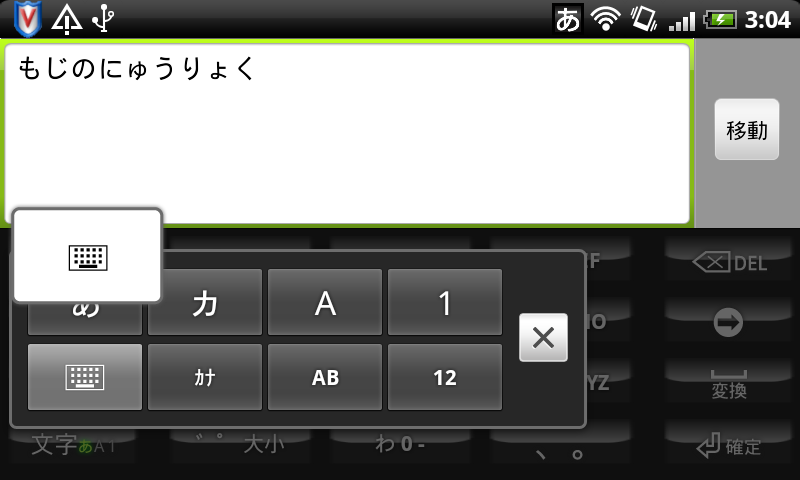 キーボードを非表示にしたい場合、表示したい場合は「menuキー」を長押しする