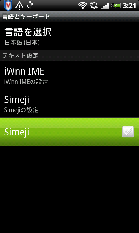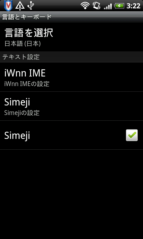 文字入力アプリには様々な設定可能だ。ホーム画面から「menuキー」→「設定」→「言語とキーボード」とすすみ、文字入力アプリの設定を行ってみよう。