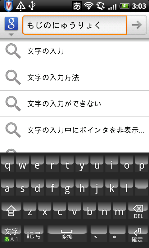 画面はHTC Desire(X06HT)のデフォルトのキーボード