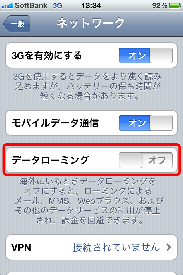このように万一定額対象でない事業者に接続されてしまっても、データローミングをオフにしていればデータ通信による課金が発生することはありません。その意味で渡航前にデータローミングをオフにするのは、2重の安全装置として有効です。定額対象事業者に接続されていることを確認したら、満を持してデータローミングをONにします。あとの使い方は国内と一緒です。