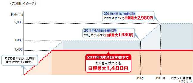 海外パケット定額では1日単位でデータ通信料が1日単位で定額になります。今回の渡航では、SoftBank、docomoともに、携帯電話やスマートフォンでの通信料が上限1,480円(税込)になります。今後通信料の上限は変更になる見込みですので、SoftBankやdocomoのWebページで渡航前に確認しておくことをおすすめします。