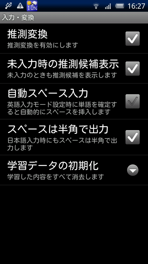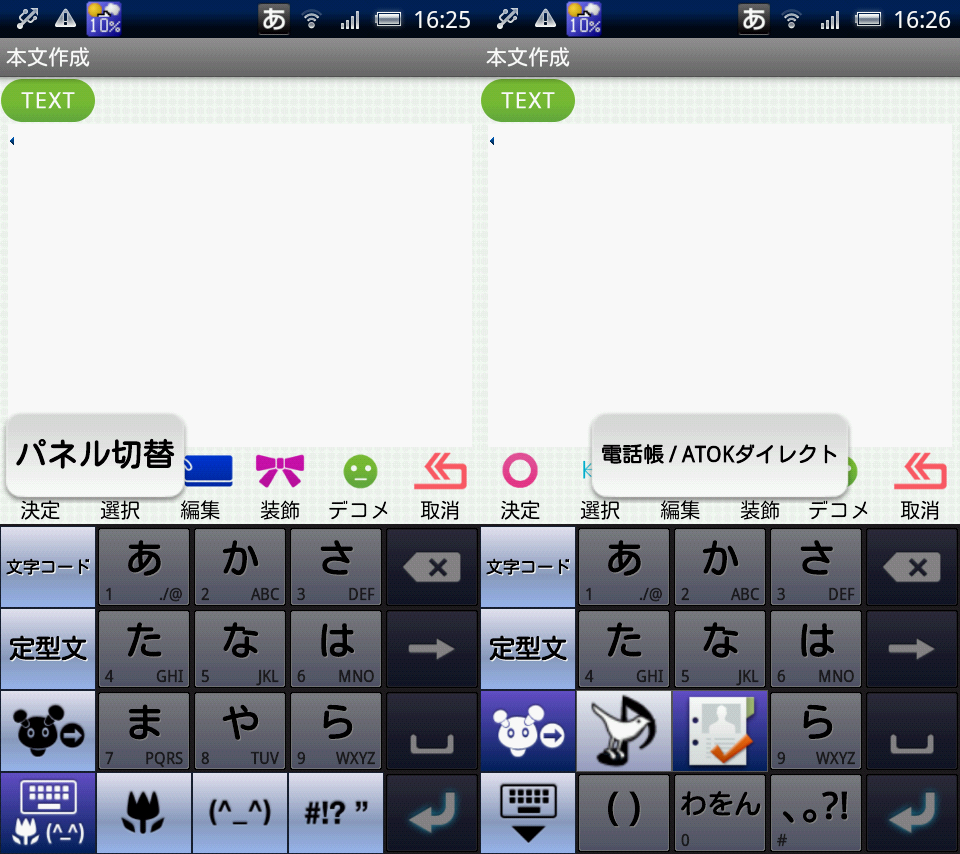 となっています。一部SIRIUSα IS06などの端末でも動くとの報告があるようですが、ジャストシステムが発表しているのは以上の端末です。ドコモとauのREGZA PhoneはATOKが既にインストールされていますが、このトライアル版は別の入力方法として扱われるため、辞書などが引き継げませんのでご注意下さい。また、QWERTY物理キーボードを備えている端末では正常に動作しないとのことでした。