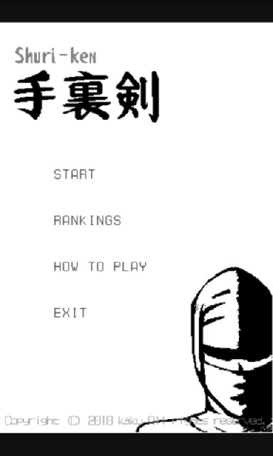 押し寄せる忍者をフリック動作で手裏剣を打って撃退し、スコアを競うAndroid用のシューティングゲーム、「手裏剣」を紹介します。