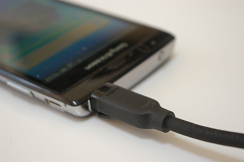 microHDMI端子にケーブルを接続してみたところ