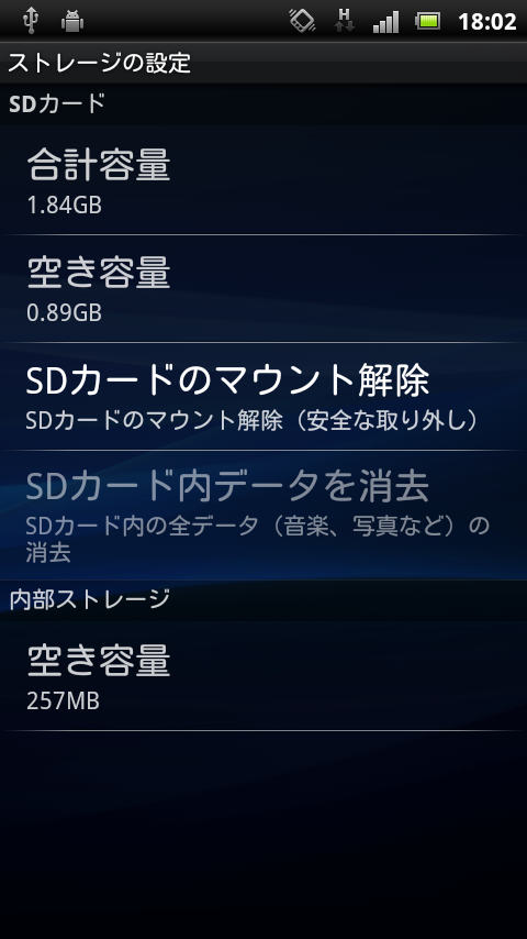 内蔵メモリを確認
