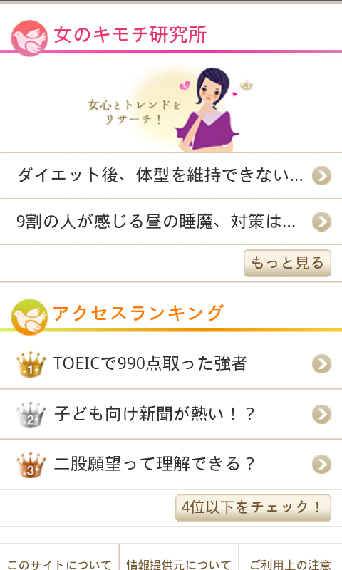 KDDIおよび沖縄セルラーは4日、女性向けポータルサイト「au one Woman Style」のAndroid版を公開した。これまでau携帯電話向けだった同サイトを、スマートフォンのタッチ操作に合わせて利用しやすくした。通信料金以外のサイト利用料は無料。また、auだけでなく他社スマートフォンやPCからもアクセスすることが可能となっている。