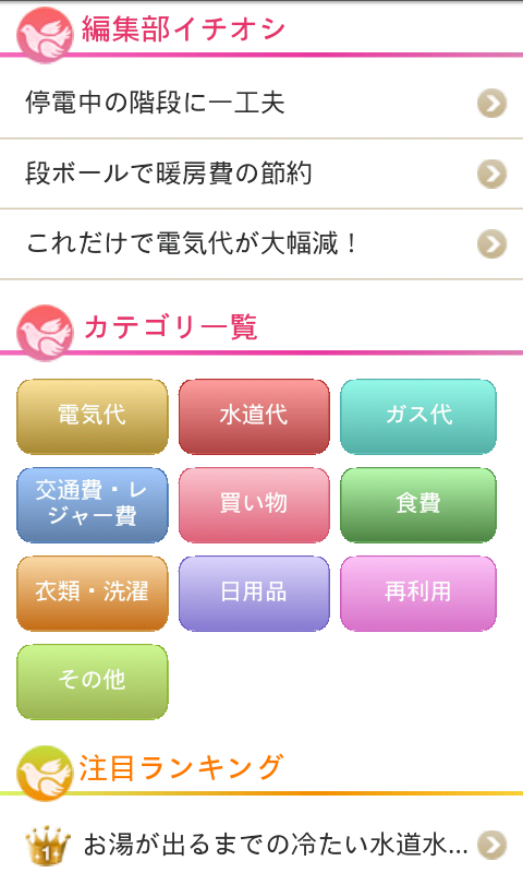 節約の達人トップ。女性だけでなく男性にも参考になる節約術が