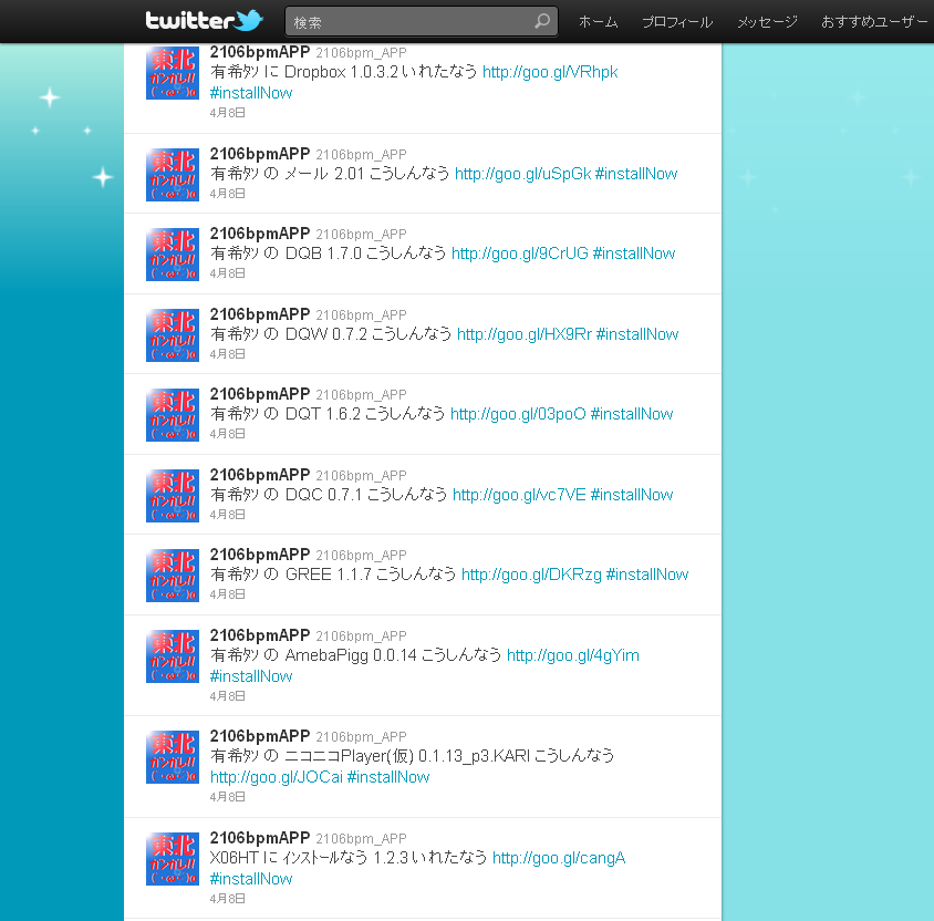 | インストールやアップデートしたアプリをTwitterにつぶやこう! |