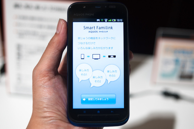スマートファミリンクは、無線LAN接続されたAQUOSブルーレイ・AQUOSテレビと連携し、AQUOS PHONEで映像を観たり、AQUOS PHONEのコンテンツをAQUOSテレビで表示する機能だ。