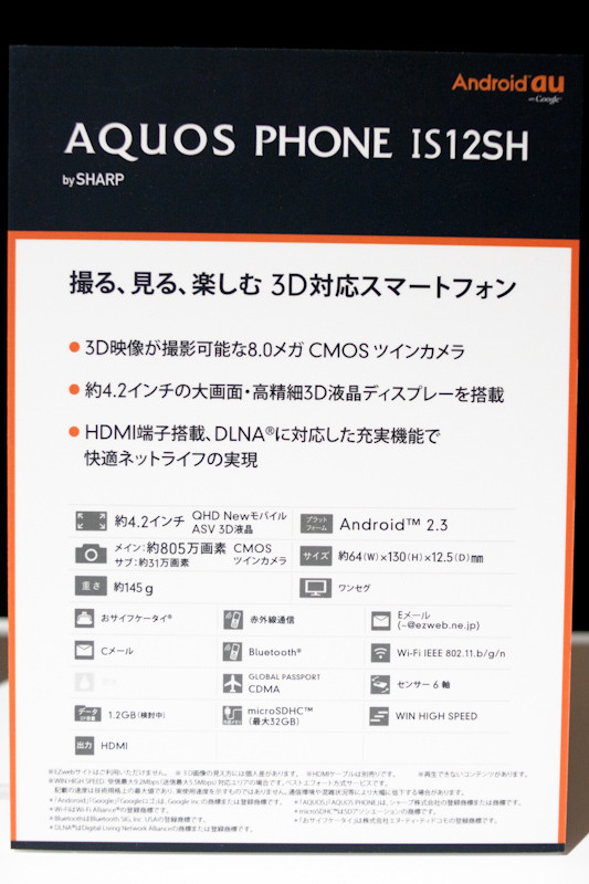 au版のAQUOUS PHONE IS12SHを早速みてみよう。