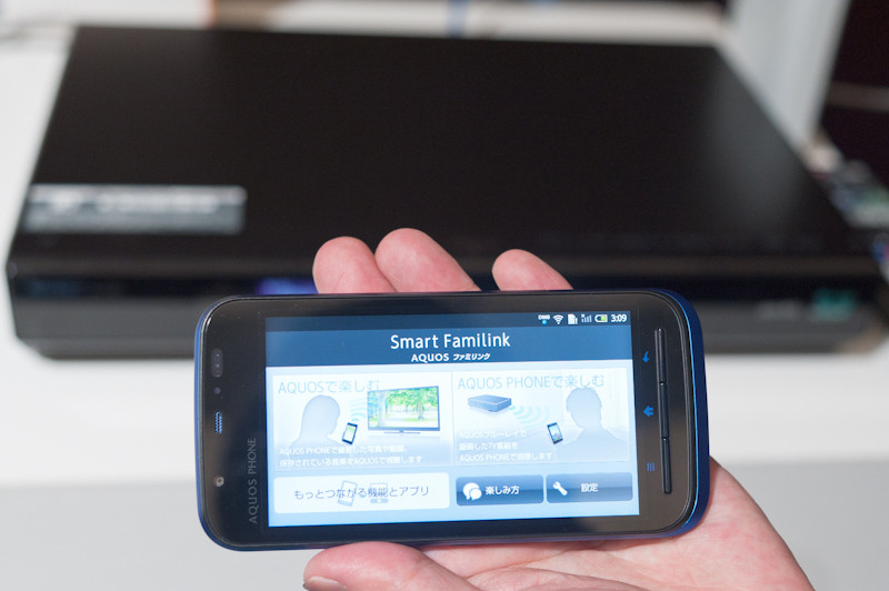 タッチ&トライ会場では、スマートファミリンクのAQUOSブルーレイとの連携のデモも行われていた。