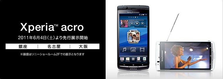 ・「Xperia(TM) acro」2011年6月4日(土)より先行展示開始- ソニーストア