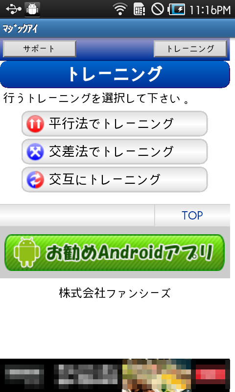 TOP画面には「マジックアイ」の説明やトレーニング方法があるので最初に確認しておきましょう。
