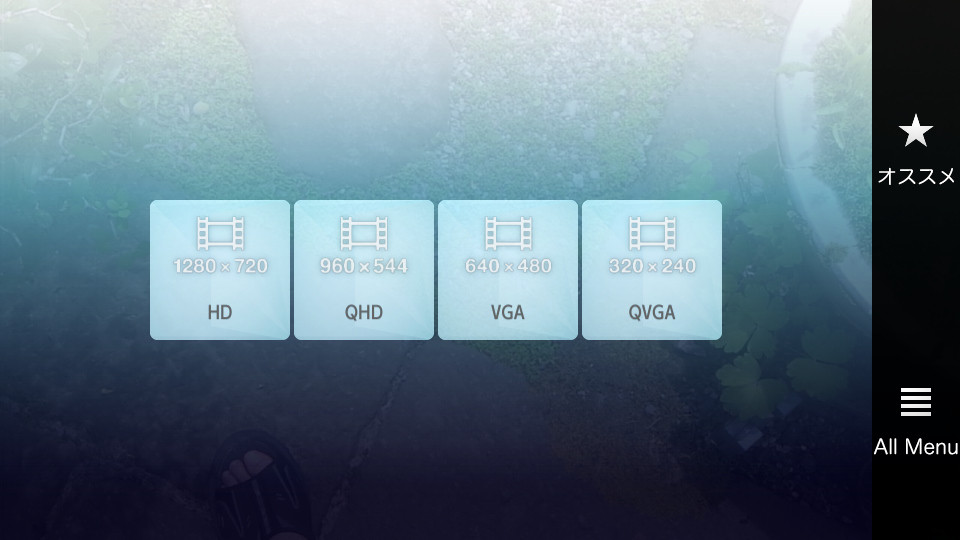 動画の設定は非常にシンプル。写真撮影の時のような各種エフェクトも掛けられない。また動画撮影は端末横向きのみで縦画面での撮影は出来ない。