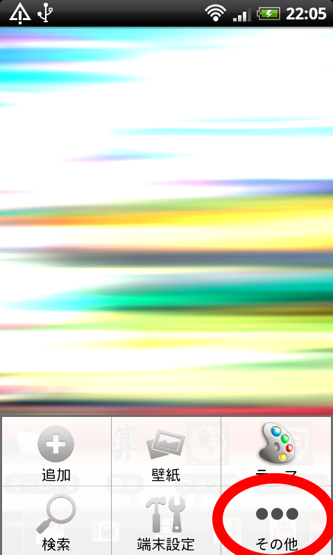 「menuキー」→「その他」を選択