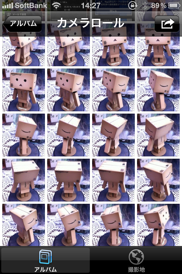 また、低解像度モードでも20枚程度撮影すると保存に掛かる時間もかなり長く、撮影後に数十秒間待たされるようでした。このあたりはiPhone 4の処理能力の限界といったところでしょうか。