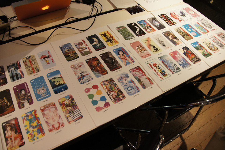 GENKI NIPPON。の参加アーティストによるステッカーシートの見本。展示しているiPhoneケースに見劣りしない素晴らしい作品ばかりだ。
