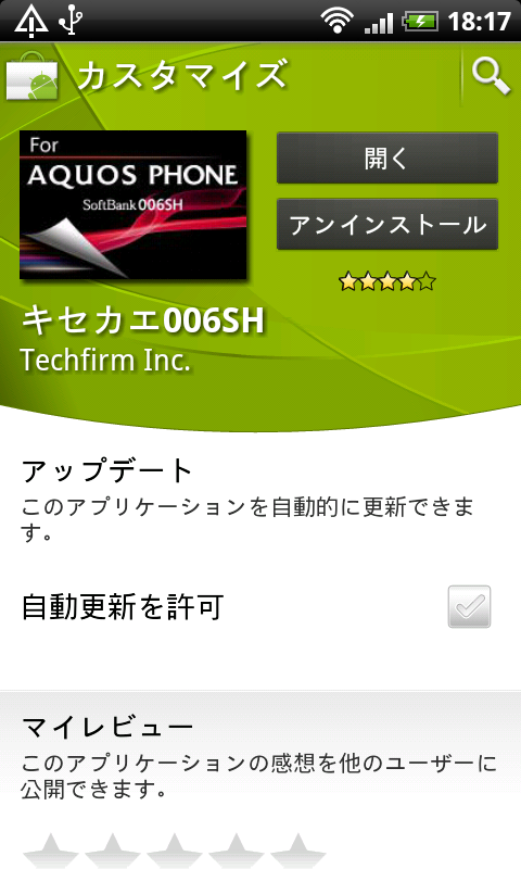 キセカエ006SHの設定画面