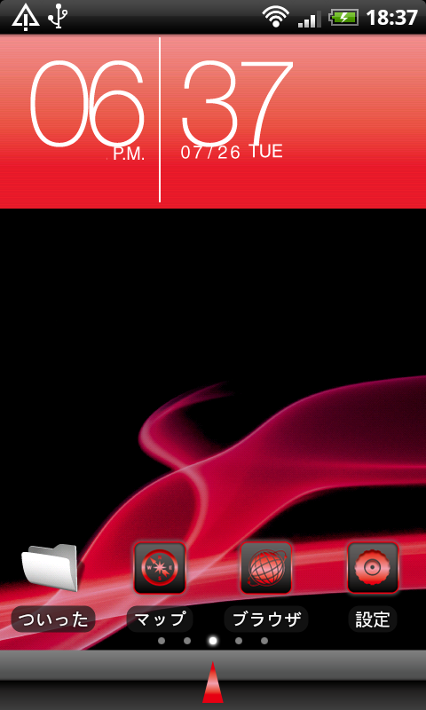 ホームアプリ、ライブ壁紙ともに006SHの世界観を表現したシンプルでカッコイイデザインだ。今回はHTC Desire(X06HT)で試してみたが、不安定な挙動もなく利用できた。ただし、電池ピクトを設置した場合、赤い電池ピクトが表示されるため、無意識に電池切れと認識してしまう点が気になった。さすがに電池ピクトは赤以外の色にして欲しかったが、OFF設定にしてデフォルトの電池ピクトの表示のみにしておけば問題ない。赤と黒を基調したカッコイイデザインのホームアプリとライブ壁紙は是非試して欲しいオススメのアプリだ。