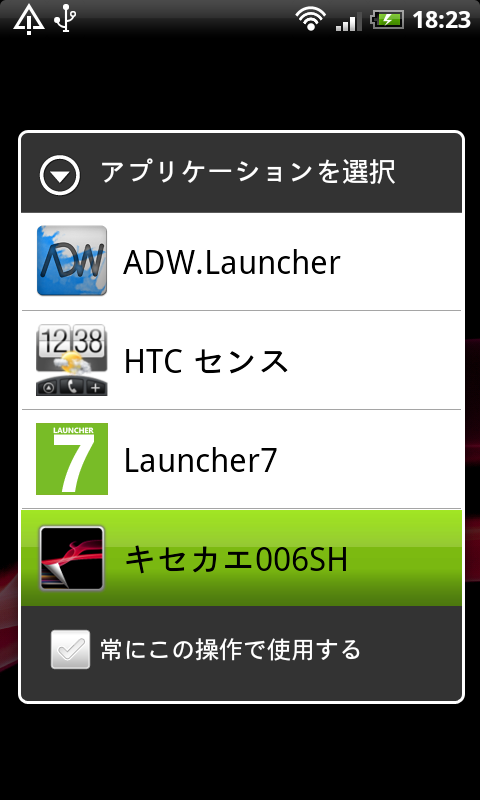 ホームボタンを押して「キセカエ006SH」を選択すれば適用される
