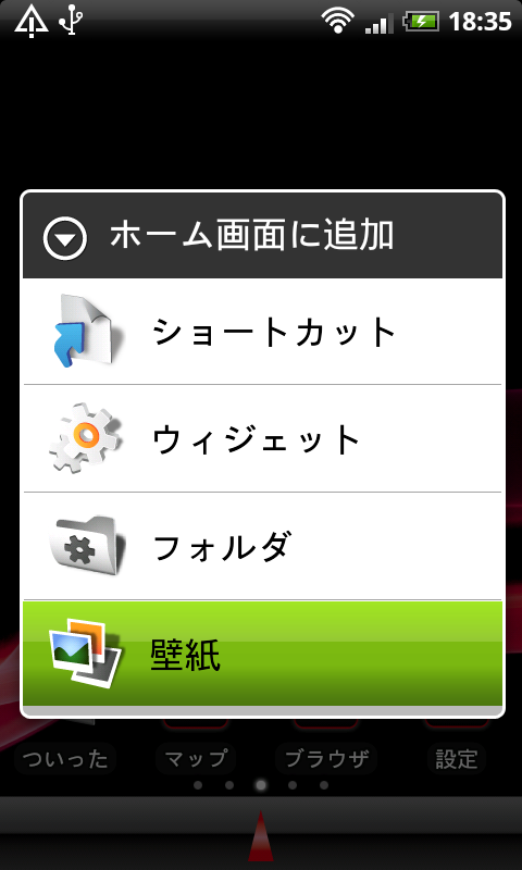 ホーム画面に追加で「壁紙」を選択する