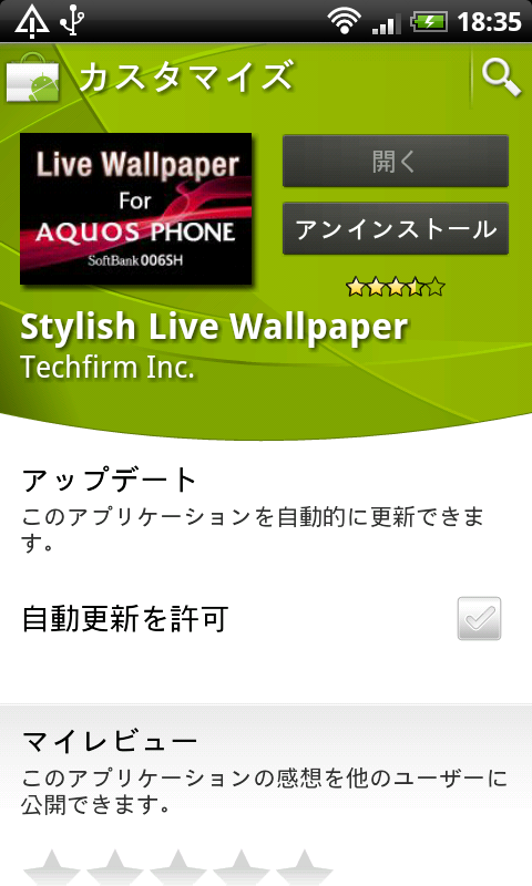 ホームアプリの「キセカエ006SH」は以前紹介した「キセカエADVANCE」がベースとなっているため、006SH以外のスマートフォンでもAndroidマーケットからダウンロードして利用できる。ただし、基本的にはソフトバンクモバイルのスマートフォンが対象となっているようだ。キセカエ006SH用のライブ壁紙「Stylish Live Wallpaper」と合わせて紹介する。