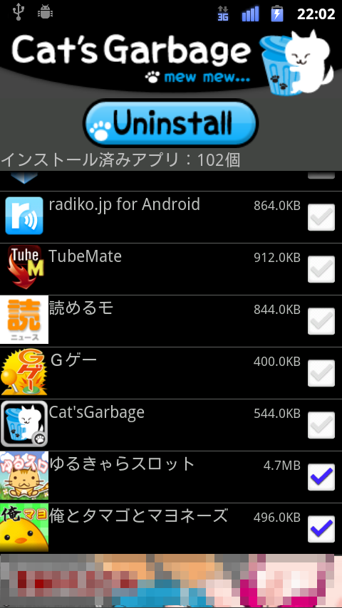 インストールしたアプリを一覧で表示し、アプリ容量も見やすく表示してくれ不要なアプリが探しやすく、削除しやすいAndroidアプリ「ねこのゴミ箱」を紹介したいと思います。2重チェックをしながら削除していくので間違って削除してしまうこともなくシンプル操作なので安心です。