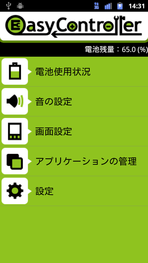 今回紹介するAndroidアプリ「Easy Controller」は、電池の使用状況やよく使う設定項目をシンプルな画面で簡単に呼び出すことができるアプリです。そのため、最近、Androidデビューされた人や携帯電話操作は苦手という人にも簡単に操作をすることができるようになっています。