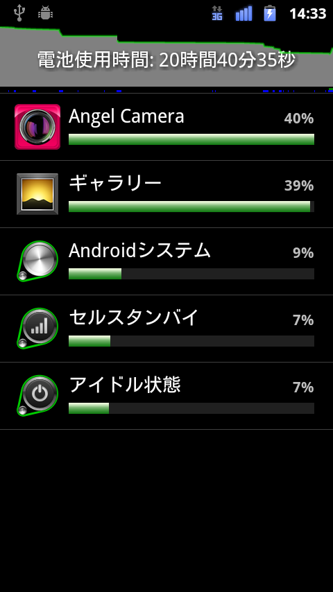 電池の使用状況を%で表示などが表示されます。