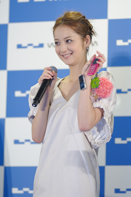 佐々木希さんの手には、ソキウス。ソキウスのストラップにはストラップフォンが付いていた。