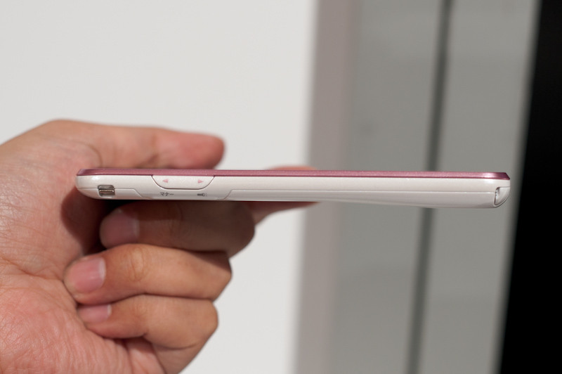 左側面には、microUSB端子や電源/ロックキーが配置、右側面には、ストラップ穴や音量上下キー、ワンセグ用ロッドアンテナが配置されています。チップセットには、QUALCOMM MSM8655 Snapdragon 1.4GHz CPUが搭載で、無線LAN(802.11b/g/g)、Bluetooth 3.0、GPS、照度センサー、モーションセンサー(加速度センサー+地磁気センサー/6軸)、グローバルパスポート CDMAなどに対応しています。
