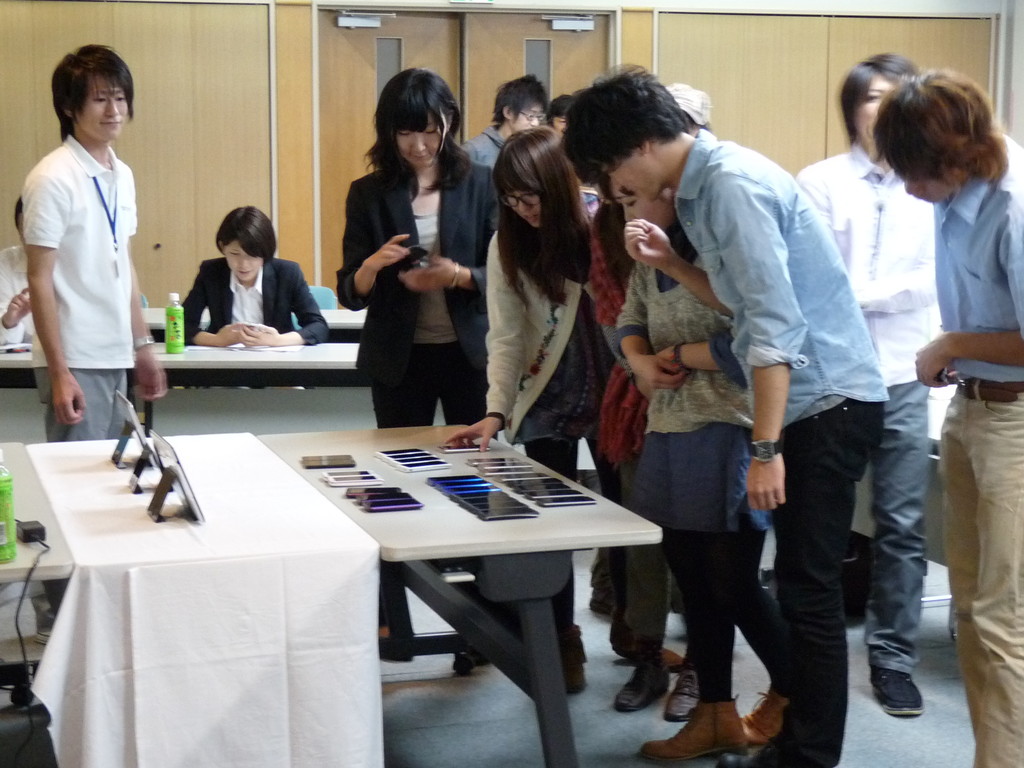 どのスマートフォンを体験しようかな?と学生さんも興味津々でした。