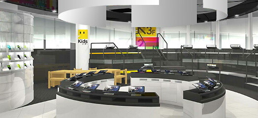 2Fは、auの様々な製品を体験できるフロア。スマートフォンやタブレットなどをじっくり試せれるよう、座って試せるコーナーを拡大。キッズコーナーも新設した。