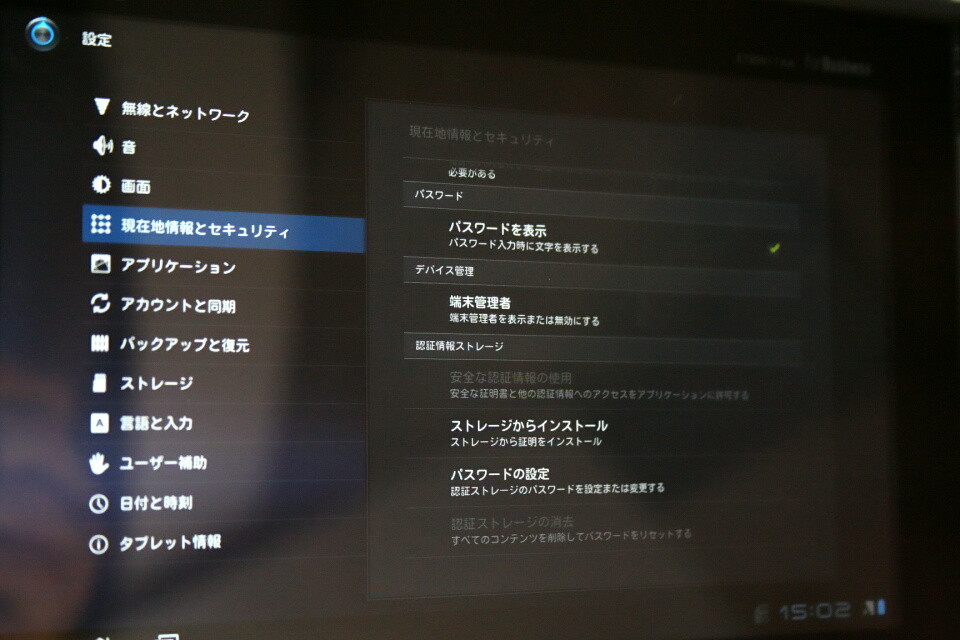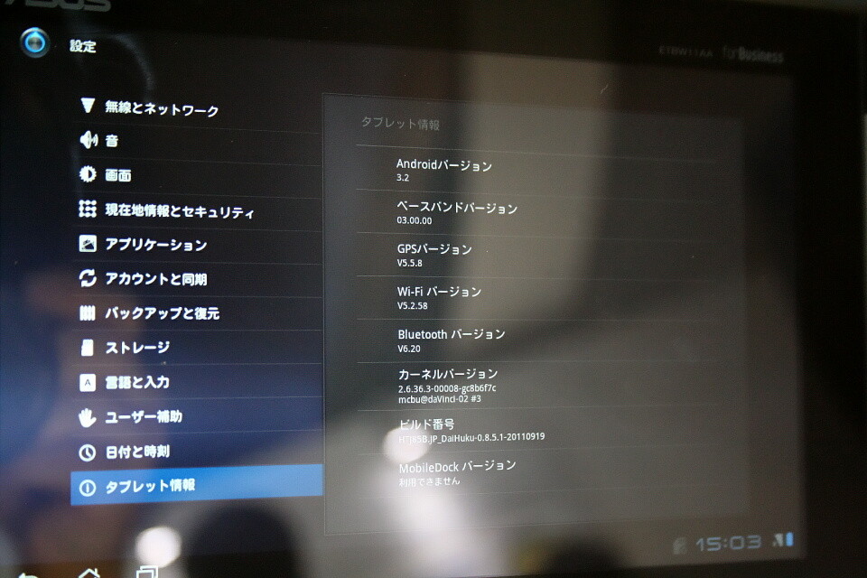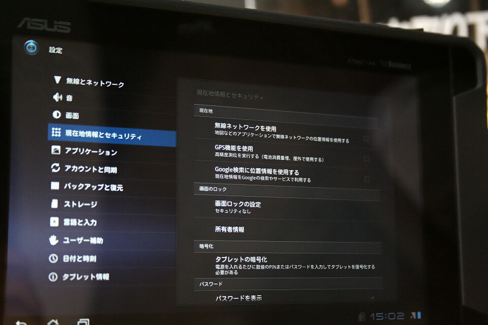 先にレポートをしたビジネススマートフォン「EIS01PT」とは異なり、こちらはAndroid 3.2標準の項目のみとなっている。