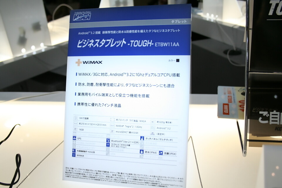 ・KDDI、au向け3G/WiMAX/Wi-Fiに対応した法人向け7インチAndroidタブレット「ビジネスタブレット -TOUGH- ETBW11AA」を発表 - S-MAX - ライブドアブログ