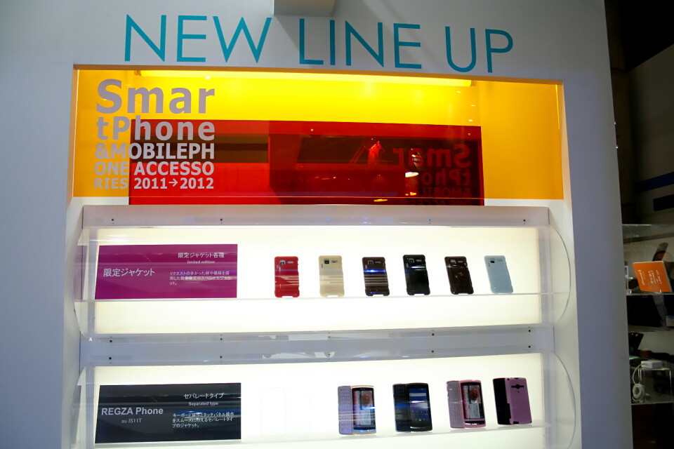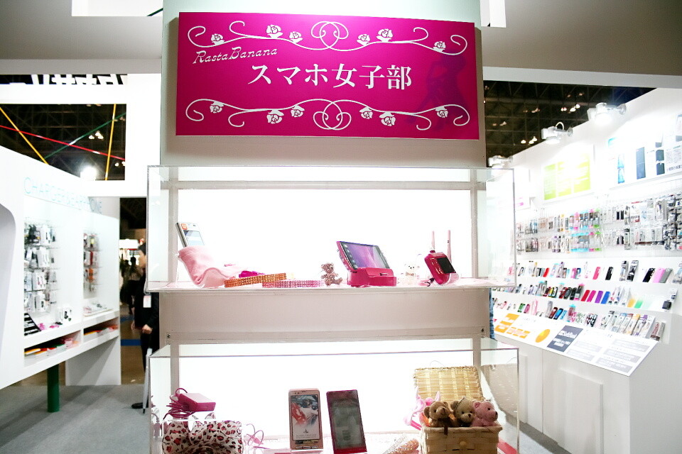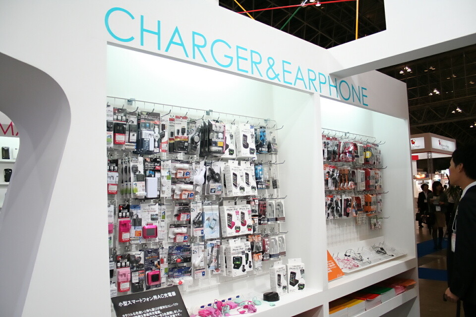 ワイヤレスジャパンでは、液晶保護シールとジャケットケースが中心の展示内容だったが、シーテックではストラップや充電機器類に加え女性向けの展示「スマホ女子部」など多彩な展示内容となっていた。