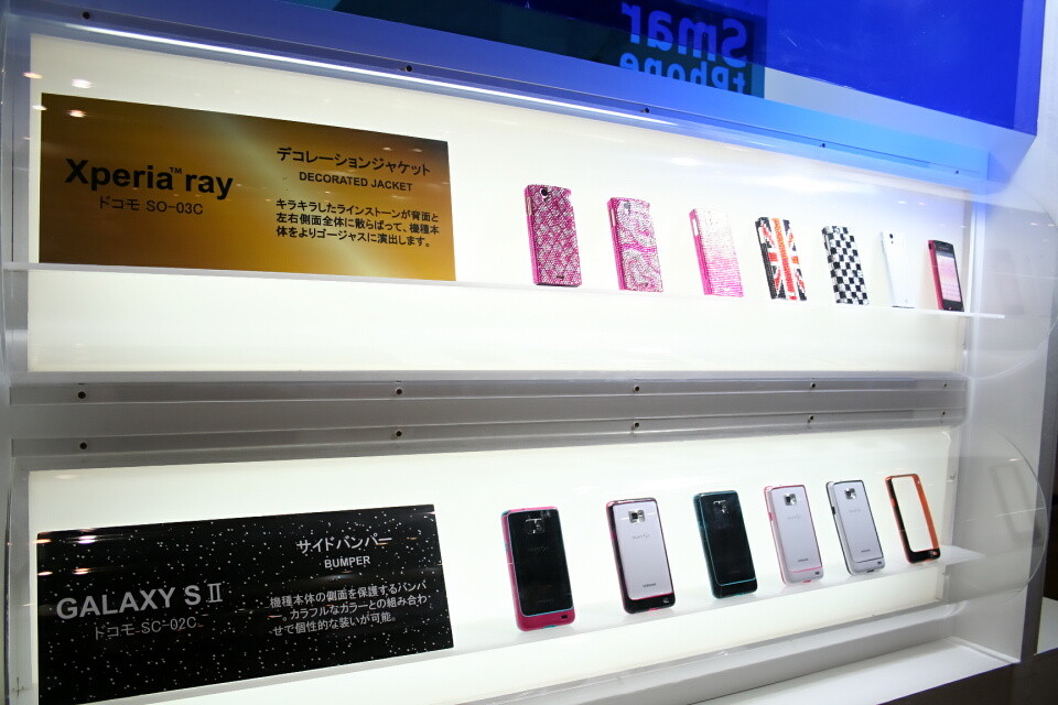 Xperia ray用の「デコレーションジャケット」とGALAXY S II用の「サイドバンパー」
