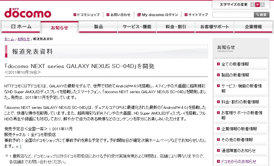 ・報道発表資料 : 「docomo NEXT series GALAXY NEXUS SC-04D」を開発 | お知らせ | NTTドコモ