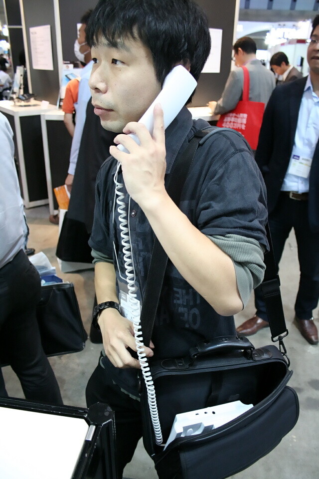 これはまさに「ショルダーホン」といえるれっきとした持ち運び用の電話機だ。受話器を耳に当てた際の不思議な一体感は違和感がほとんどなく想像以上に自然な通話スタイルが得られた。しかし、やはりバッグに入れた際に受話器がずり落ちて通話状態になってしまう。受話器が落ちない専用のキャリングケースが発売されれば次世代のショルダーホンとして活躍できそうだ。