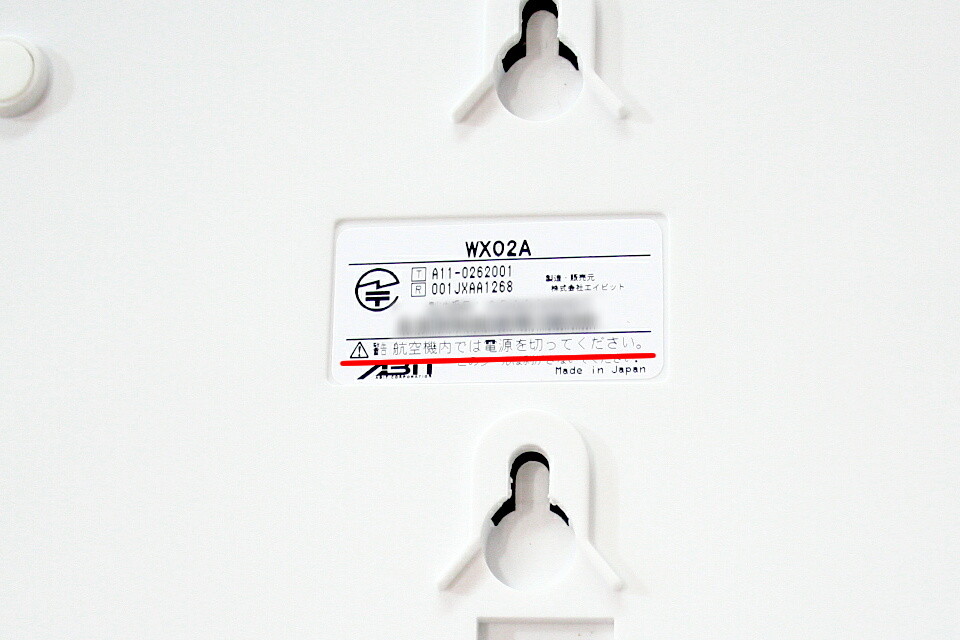 「航空機内では電源を切ってください。」と非常にシュールに記載された警告表記。これは間違いなく持ち運びを想定したものだ!(注:PHS端末として必要な警告表記で持ち運びを想定している訳ではない)