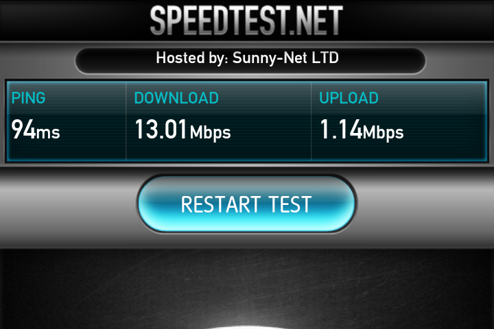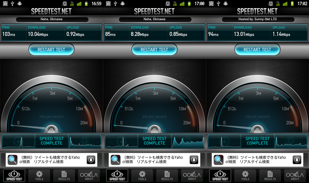 下り10.04Mbps、8.28Mbps、13.01Mbps(平均値10.44Mbps)
