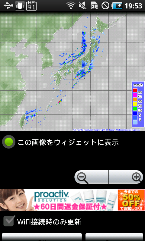 これでホーム画面に気象情報画像が表示されました!