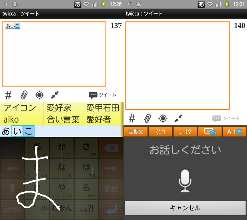 「NX!input」の大きな特徴は手書き入力や音声による入力ができること。漢字と英数字が混じった文章を打つ時、文字種切り替えが面倒ですが、手書き入力で英数字を打っていけば文字種切り替えをしなくても済みます。また、スマートフォンに慣れていない人も入力しやすい方法を採り入れることで、スマートフォン初心者にも文字入力がやりやすくなっているのが特徴です。